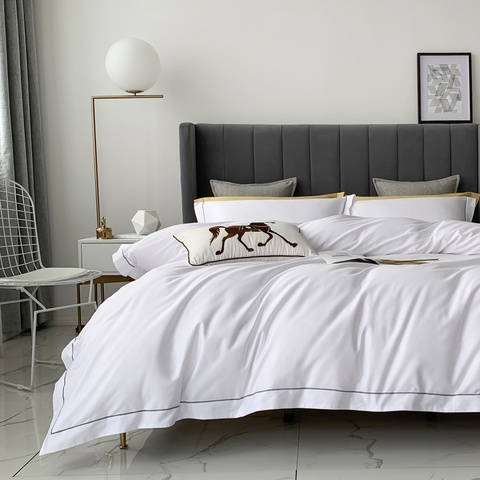 Haut de gamme classe a 140 cheval égyptien coton 300tc quatre pièces longue agrafe Satin housse de couette ensemble de literie Anti-poussière acariens usage domestique