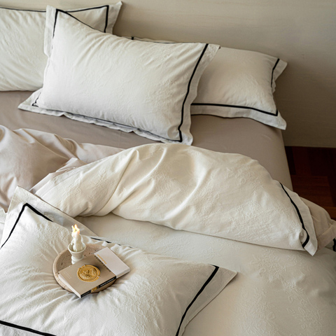 Ensemble de draps de couette 100% coton teints en fil tissé non imprimé-Génération simple de quatre pièces de couleur unie